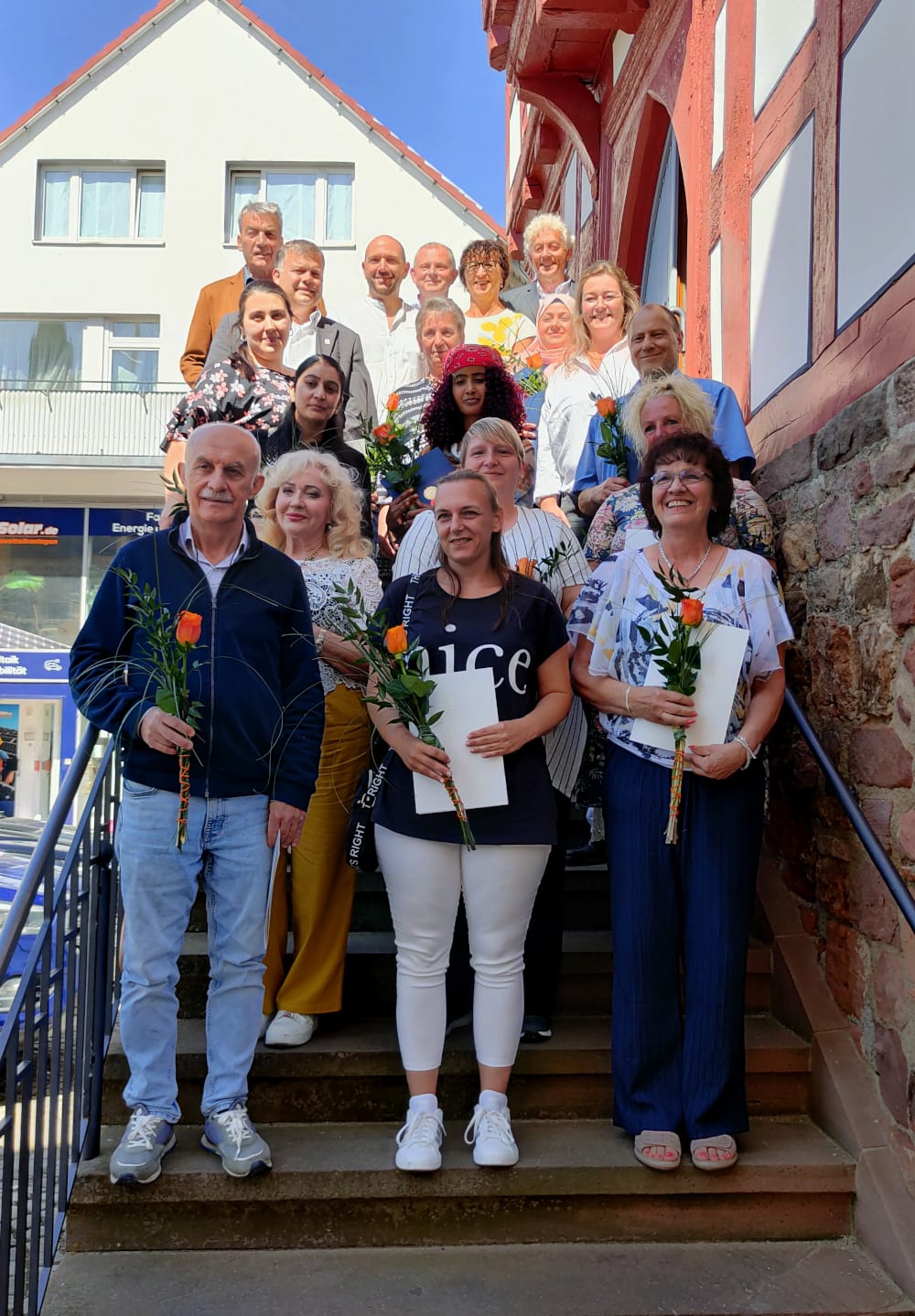 Mit einer feierlichen Zeremonie im Historischen Rathaus von Neustadt endete der erste gemeinsame Qualifizierungskurs der Bürgerhilfe Stadtallendorf und Neustadt. Insgesamt 14 engagierte Teilnehmerinnen und Teilnehmer erhielten ihre Zertifikate aus den Händen der Bürgermeister Christian Somogyi (Stadtallendorf) und Bürgermeister Thomas Groll (Neustadt).